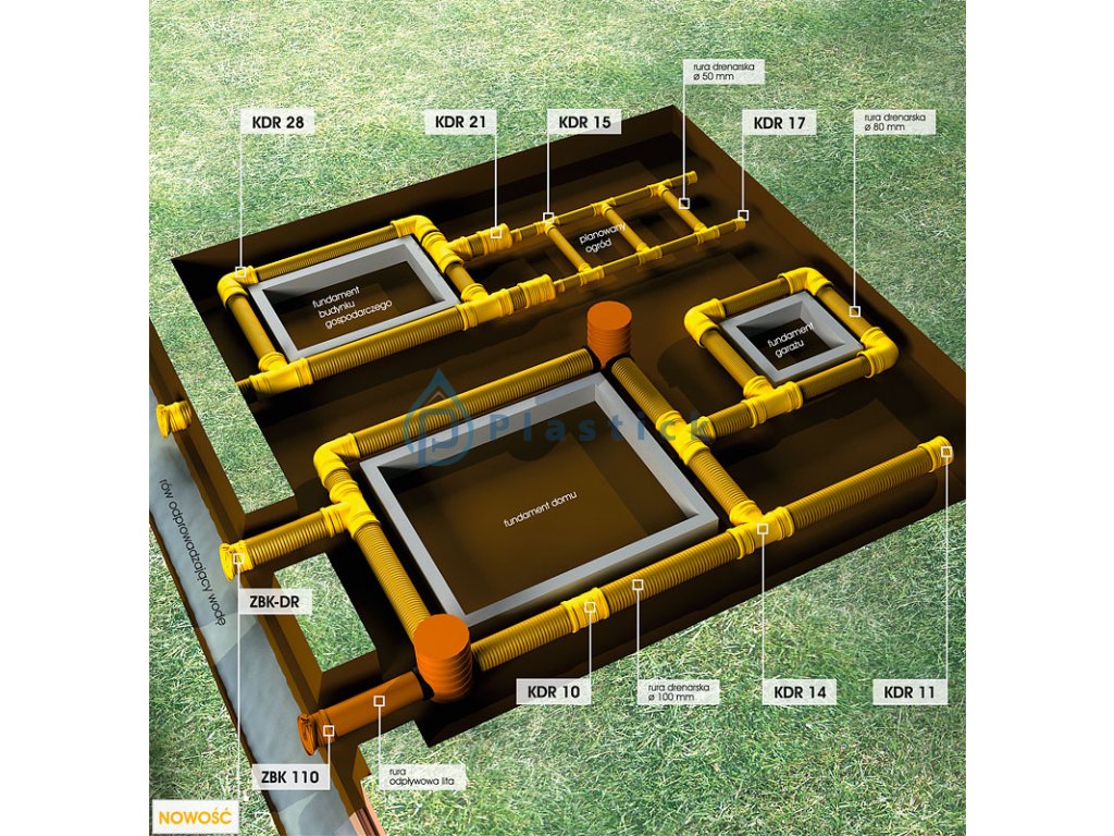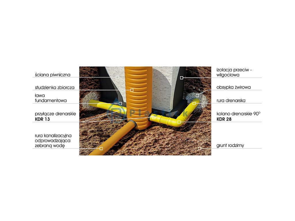 Drenážna odbočka, drenážny T-kus slúži pre odbočenie a rozvetvenie drenážnej rúry danného priemeru, a pripojeniu kanalizačnej rúry o priemere 110mm, je možné ju využiť pri pokračovaní rozvodov drenáže.