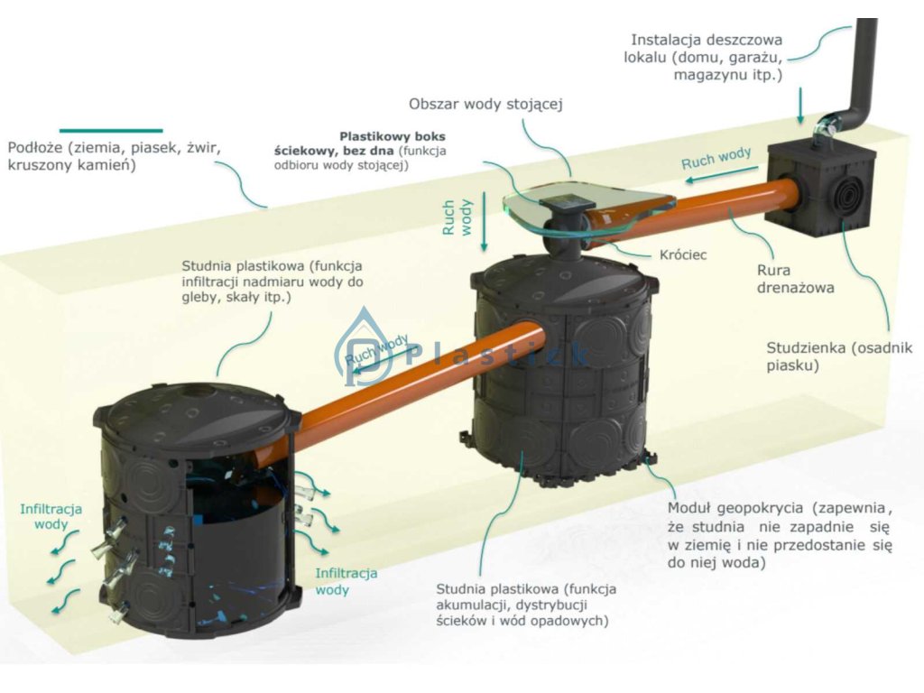 ako aj prepojenie a vytvorenie rozsiahleho systému studní vďaka veľkému počtu drenážnych otvorov.
