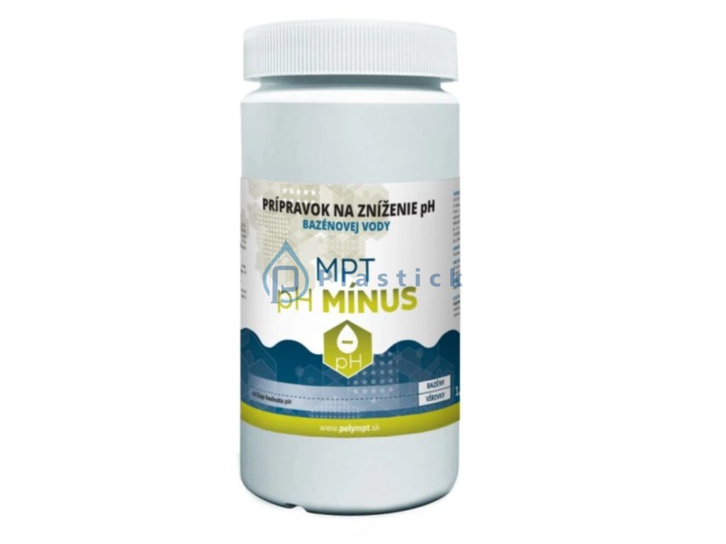 Prípravok MPT pH MINUS je vo forme nažltlých perličiek, dobre rozpustných vo vode. Vodný roztok prípravku pH mínus reaguje kyslo a preto sa s ním ľahko znižuje pH vody.