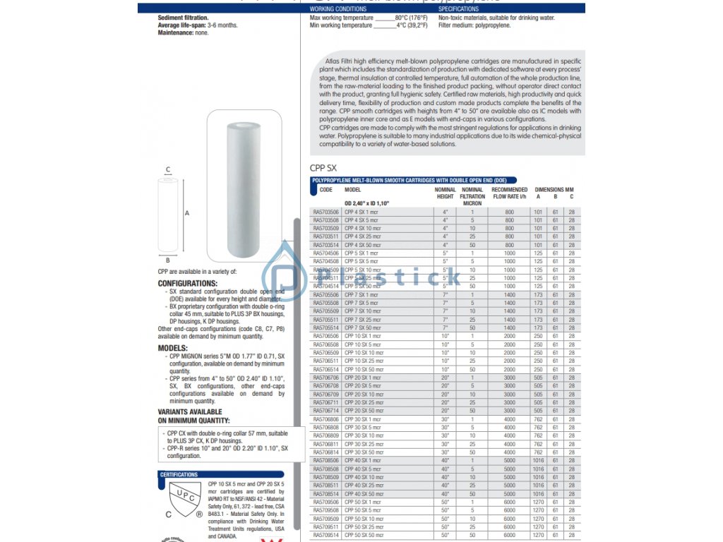 Vložka mechanická CPP 10'' SX 25mcr