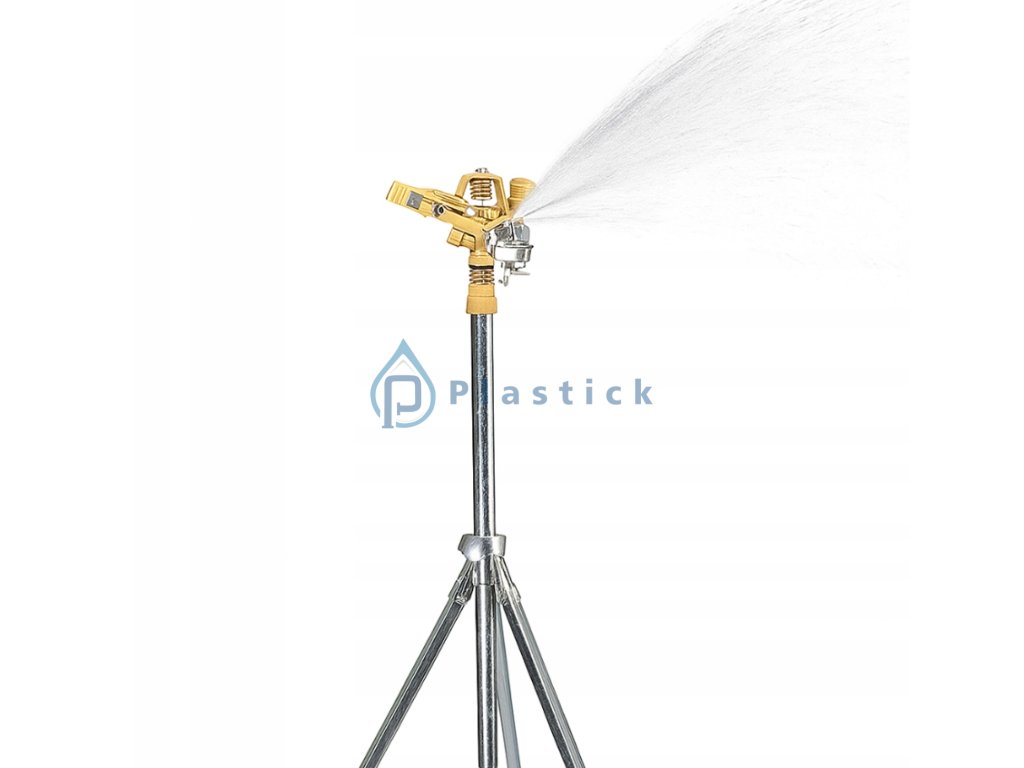 Profesionálna zavlažovacia sada s pulzným zavlažovačom BRADAS na statíve, pripravená na pripojenie! Sada obsahuje všetky potrebné komponenty pre rýchlu montáž – ideálna voľba na zavlažovanie väčších záhradných plôch, záhradiek, sadov a zelených plôch.