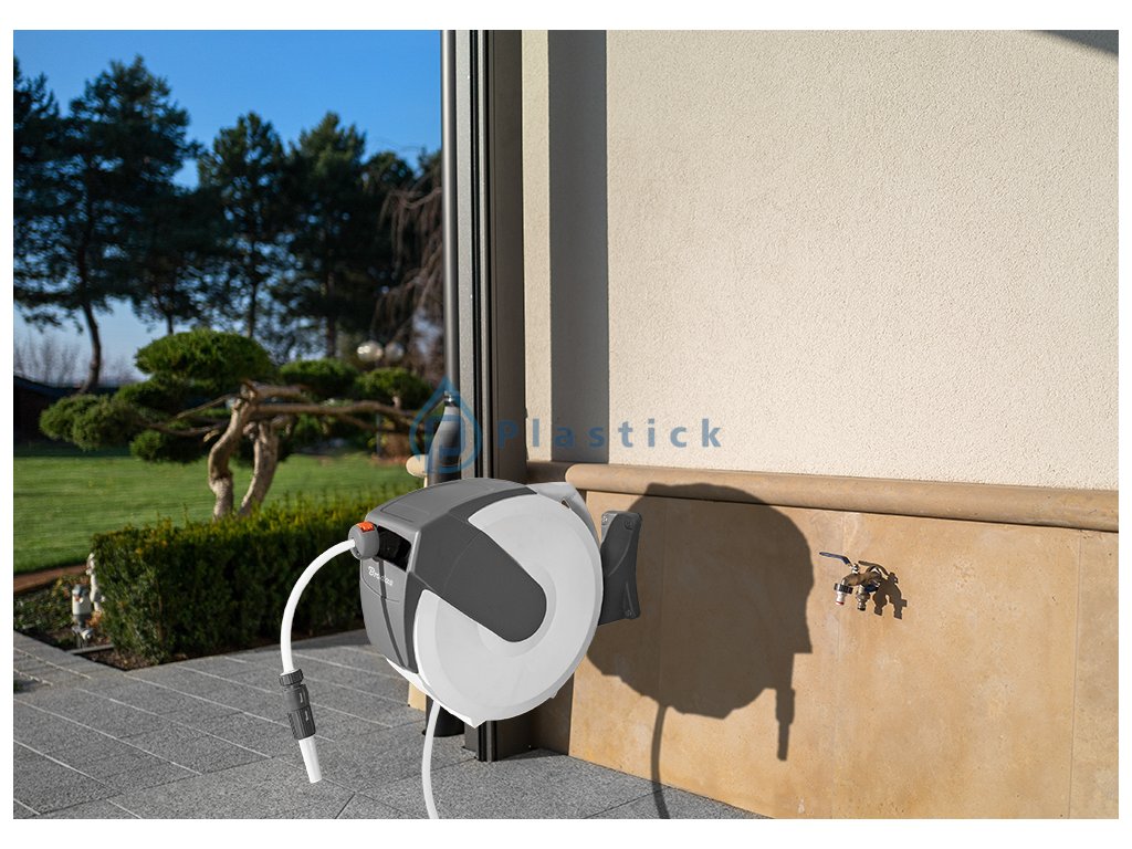 Záhradný bubon WHITE LINE pojme 20 m hadice s priemerom 1/2". Vyznačuje sa ľahkou a odolnou konštrukciou, je vyrobený z pevného materiálu odolného voči UV žiareniu. Má držiak, do ktorého môžeme umiestniť postrekovaciu koncovku. Otočné pripojenie prípojky zabraňuje krúteniu hadice.