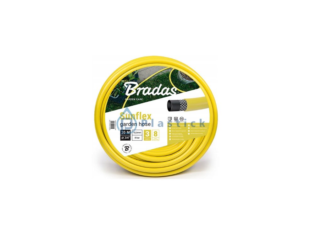 SUNFLEX – 3-vrstvová záhradná hadica, vystužená. Vyrobená z mäkkého PVC.