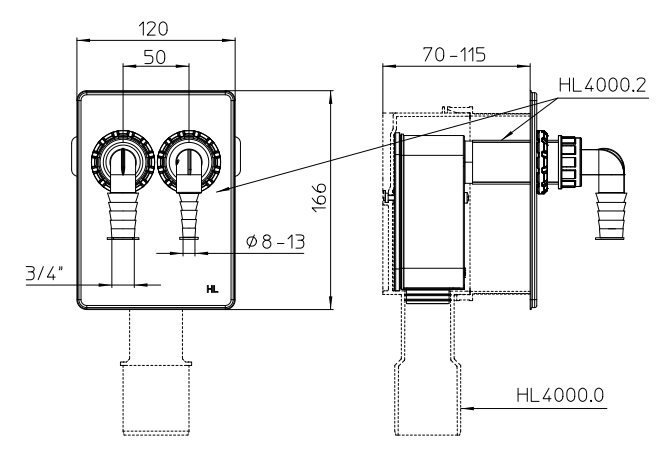 Kompletizačný set HL4000.2 je určený na finálnu montáž a pripojenie dvoch umývacích zariadení (napr. práčky a umývačky riadu) k podomietkovému telesu zápachového uzáveru HL4000.0. Ponúka praktické a estetické riešenie s vysokou spoľahlivosťou a minimálnymi nárokmi na priestor.