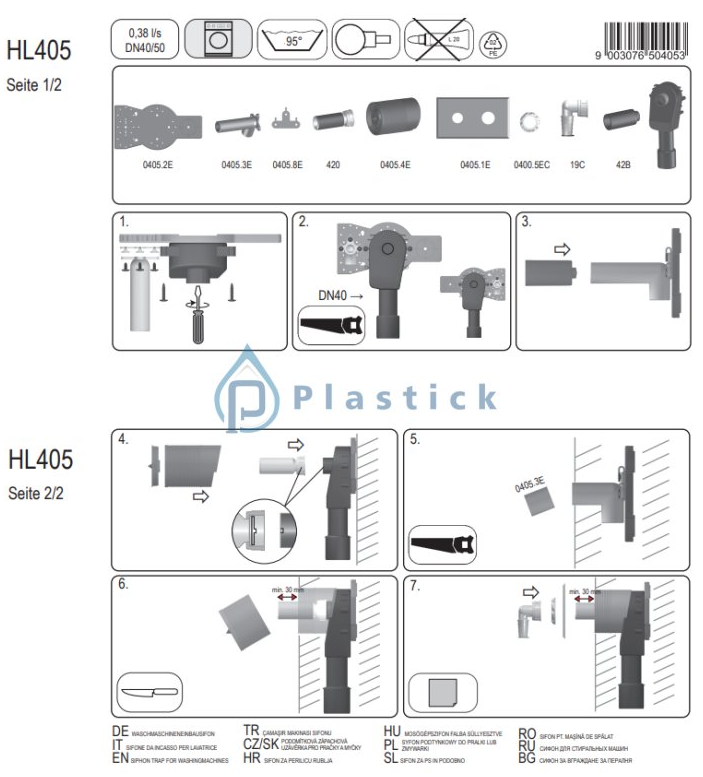 Podomietkový zápachový uzáver HL405 je určený na hygienické a spoľahlivé pripojenie umývačiek riadu, práčok a ďalších umývacích zariadení ku kanalizačnému systému. Montáž do steny umožňuje čistý a estetický vzhľad, pričom integrovaná zápachová uzávierka zabraňuje prenikaniu nepríjemných pachov z kanalizácie do miestnosti.