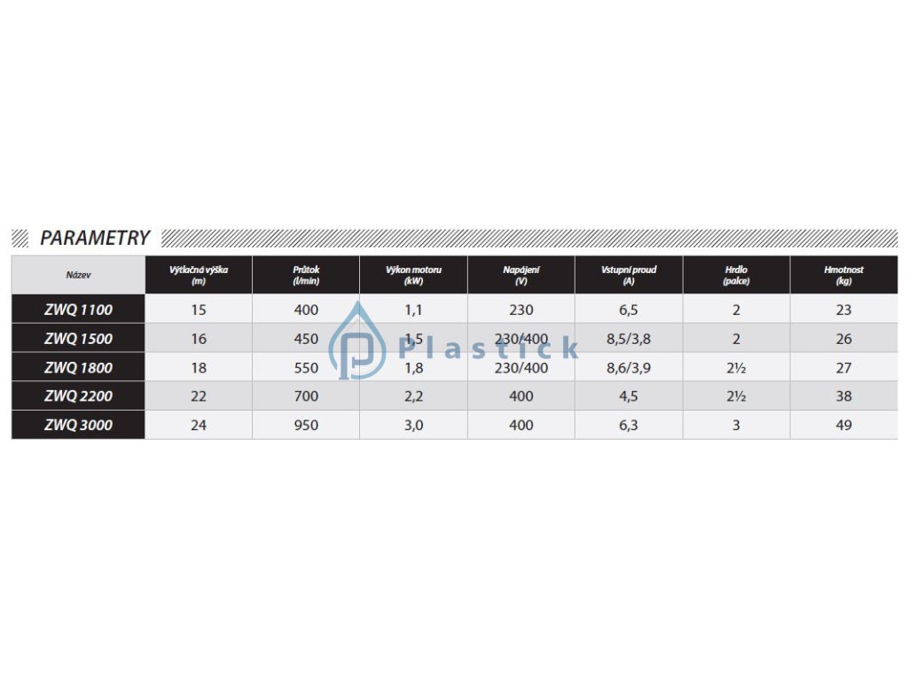 Vlastnosti ponorného čerpadla ZWQ 1100 IBO: