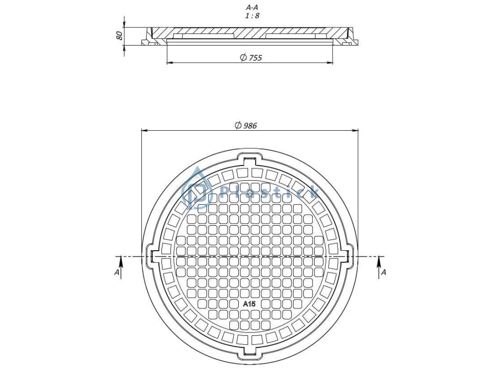 Poklop kompozitný Ø800 A15 bez uzamykania