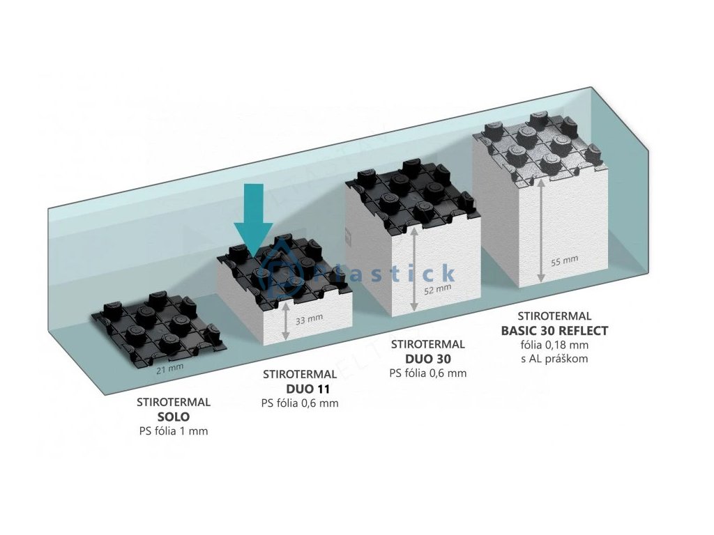 - odrazovú fóliu tvorí tvrdený PS plast o hrúbke 0,6 mm s výstupkami (hríby) s prevismi umožňujúce rýchlu a jednoduchú montáž (potrubie následne nevyskočí)
