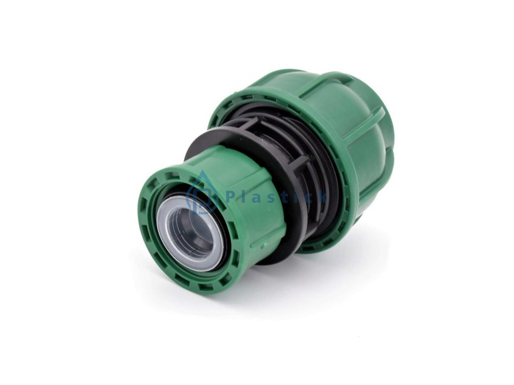 Táto kompresná spojka s prevlečnou maticou je určená pre PE rúry s priemerom 25 mm a umožňuje ich jednoduché pripojenie k elektromagnetickým ventilom, filtrom a iným zariadeniam s 1" závitom.