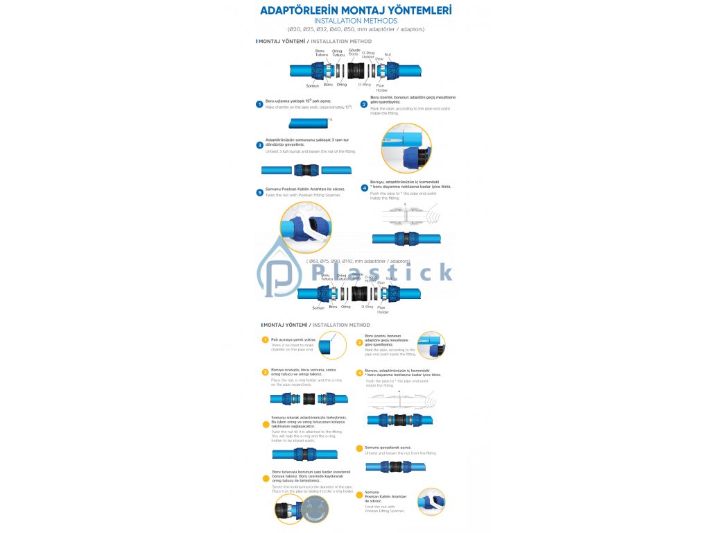 Mechanické tvarovky na PE slúžia na spájanie LDPE a HDPE potrubia jednoduchým a spoľahlivým spôsobom.