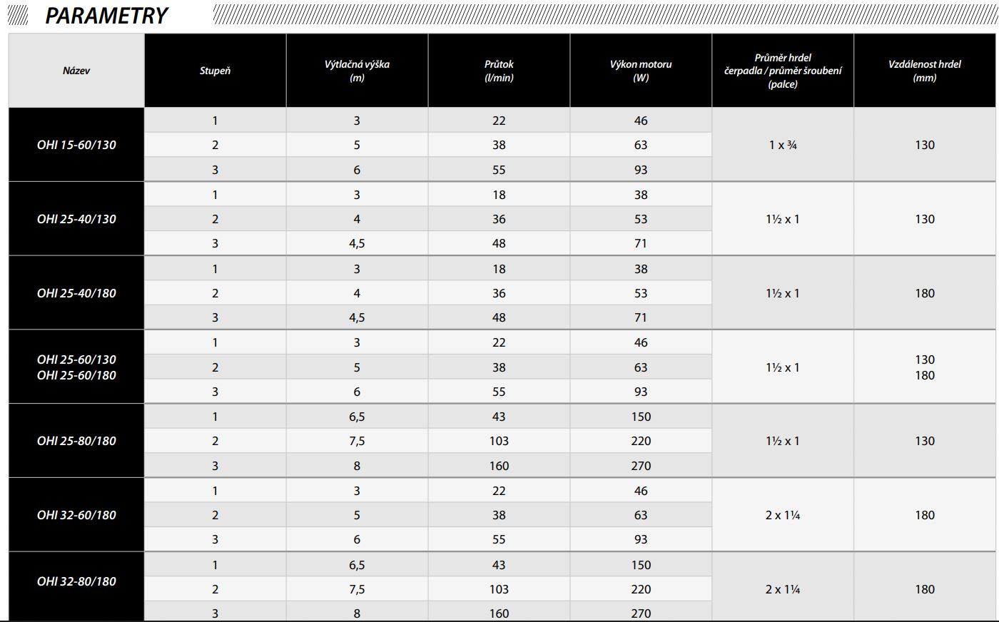 - Čerpadlá radu OHI sú vybavené prepínačom 3 rýchlostí mechanického otáčania rotora motora, čím sa zabezpečuje optimálna spotreba elektrickej energie v závislosti na špecifických podmienkach vykurovania.