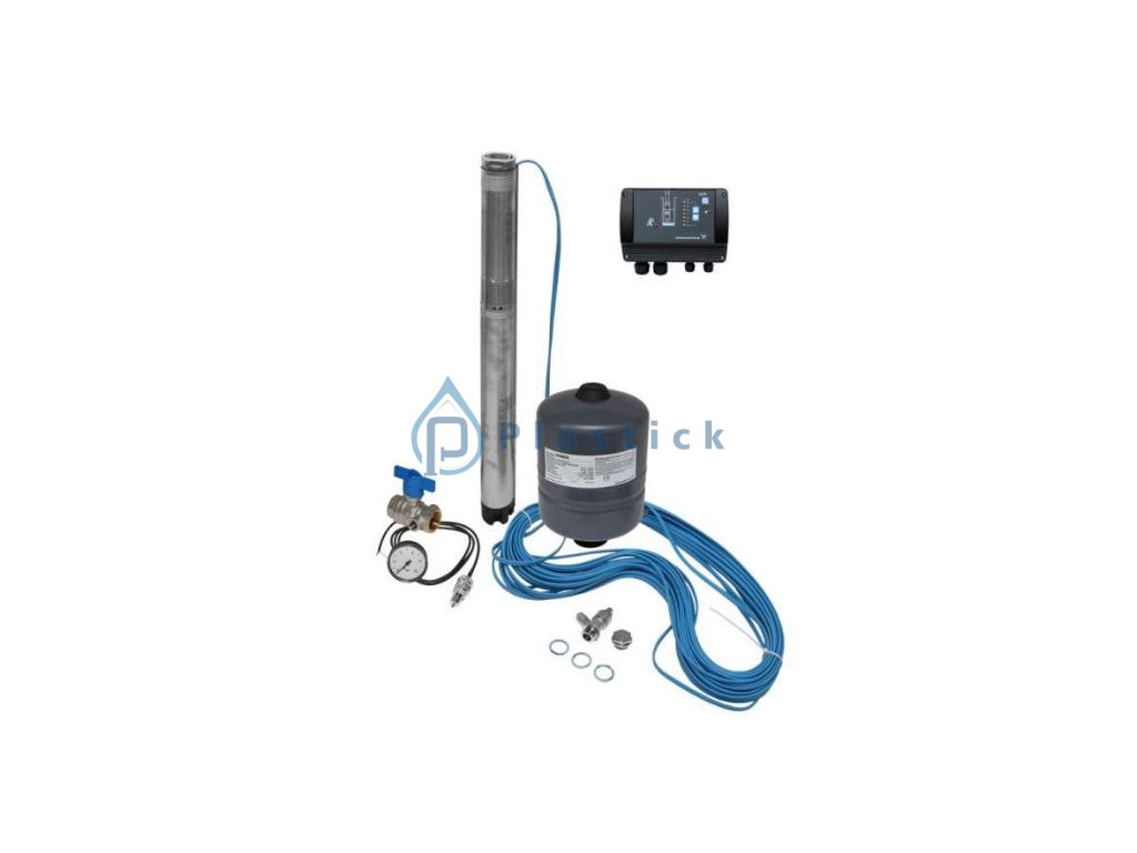 Táto zostava je určená pre aplikácie, kde potrebujete udržiavať konštantný tlak napríklad pri odbere z viacerých odberných miest. Systém udržuje konštantný tlak až do max. výkonu čerpadla bez ohľadu na meniace sa spotrebu vody. Hodnota tlaku je zisťovaná snímačom tlaku a prenášaná do jednotky CU 301. Táto jednotka v závislosti na tom nastavuje príslušnú hodnotu výkonu čerpadla. Ponorné čerpadlo Grundfos SQ 3-65 je 3-palcové kompaktné viacstupňové odstredivé čerpadlo, ktoré je určené pre čerpanie vody z úzkych vrtov a studní s jednoduchou inštaláciou a prevádzkou. Vďaka motorom s permanentným magnetom ponúkajú tieto flexibilné a kompaktné čerpadlá výbornú úroveň účinnosti.
