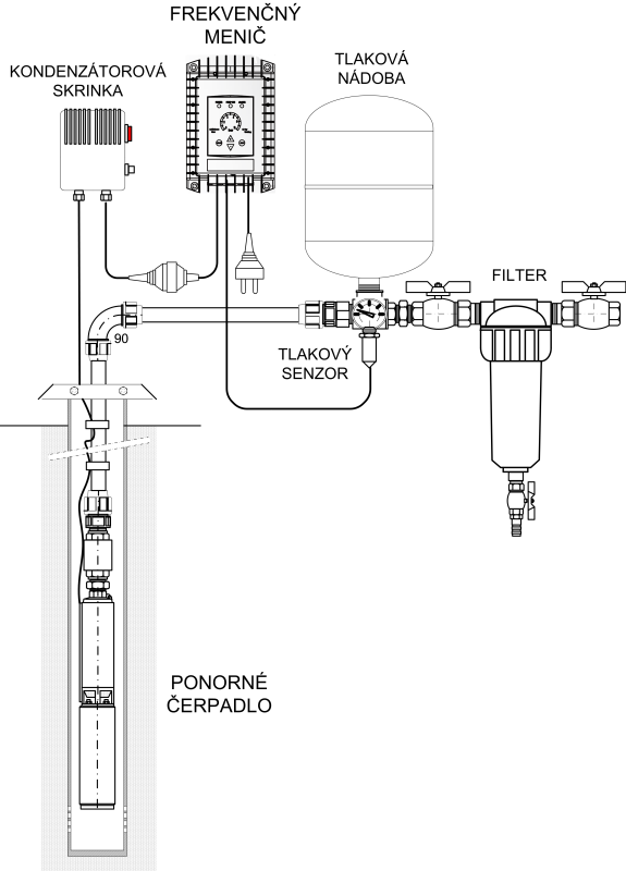 PRÍKLAD INŠTALÁCIE ČERPADLA S FREKVENČNÝM MENIČOM: