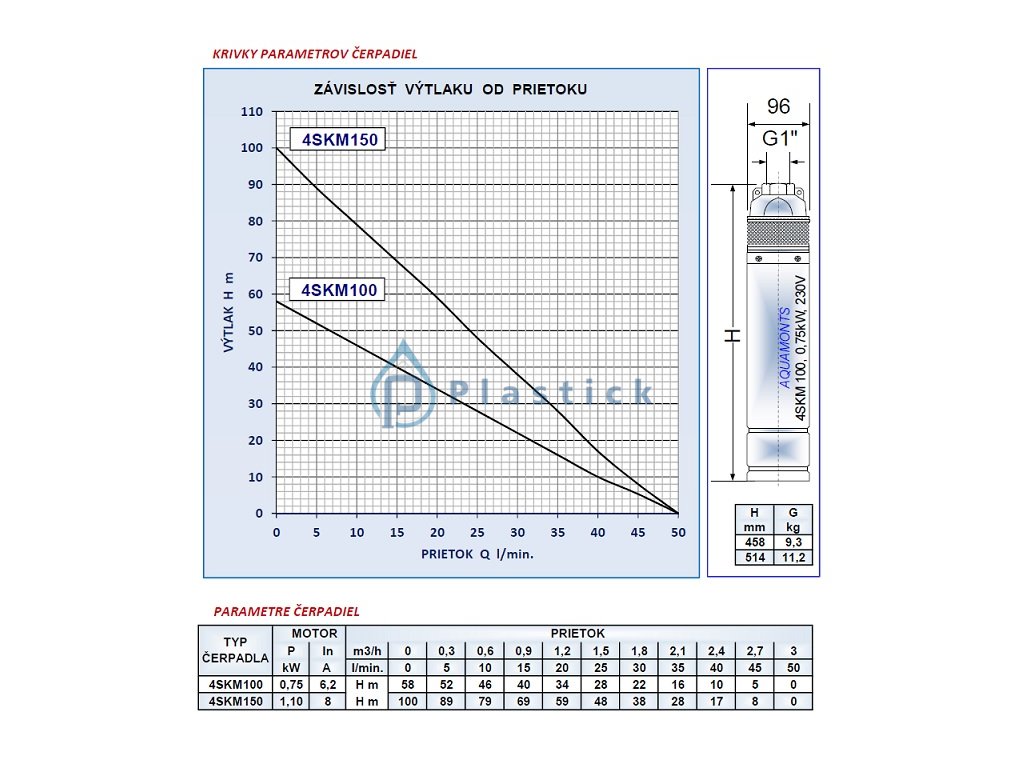 - Ponorné čerpadlo 4" 4SKM 100 230V; 0,75kW s 20m káblom, s kondenzátorovou skrinkou ukončenou zástrčkou