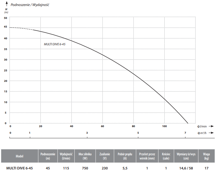 Ponorné čerpadlo MULTI DIVE 6-45 s plavákom s 10m káblom