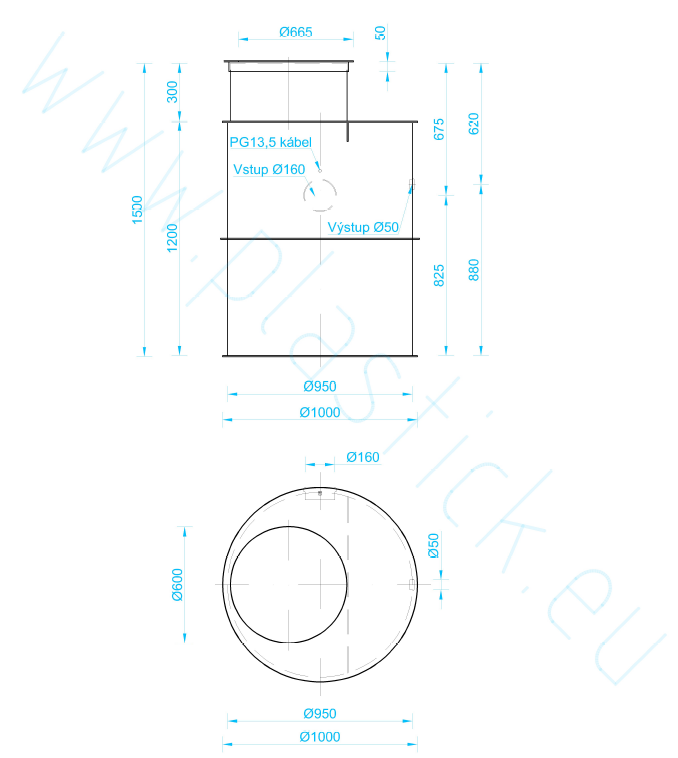 - sú vybavené spojkami pre vodotesné napojenie potrubia, vodotesným el. prechodom v stene šachty