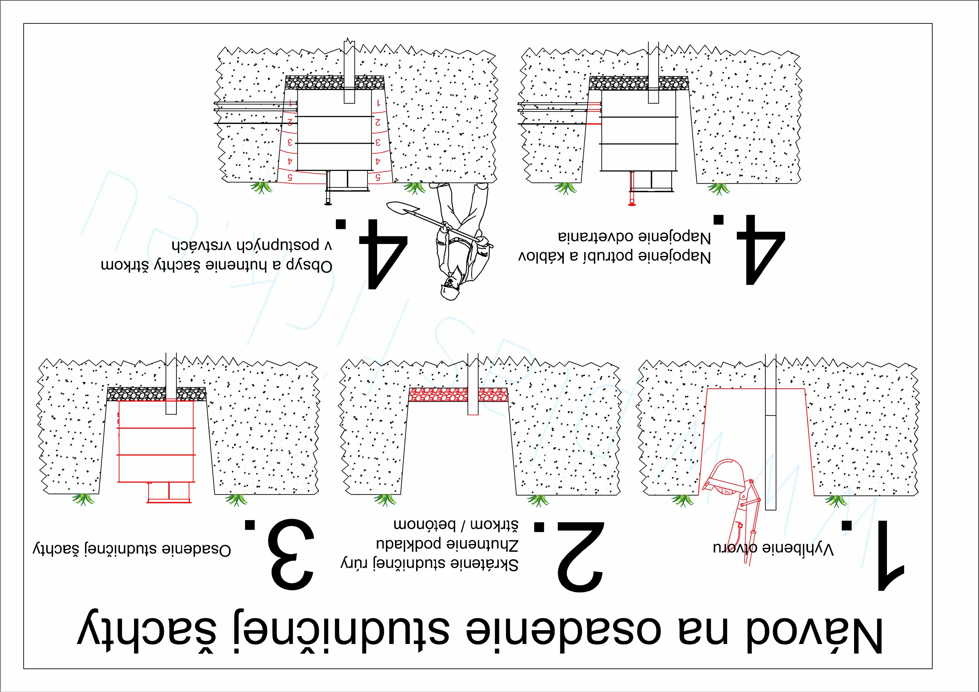 - V prípade tejto inštalácie musí byť zabránené vstupu na veko (napr. odnímateľnou betónovou doskou či oplotením priestoru šachty).