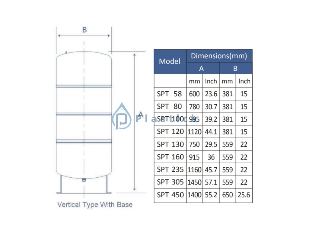 Rozmery tlakovej nádoby 100l s pevne uchytenou membránou