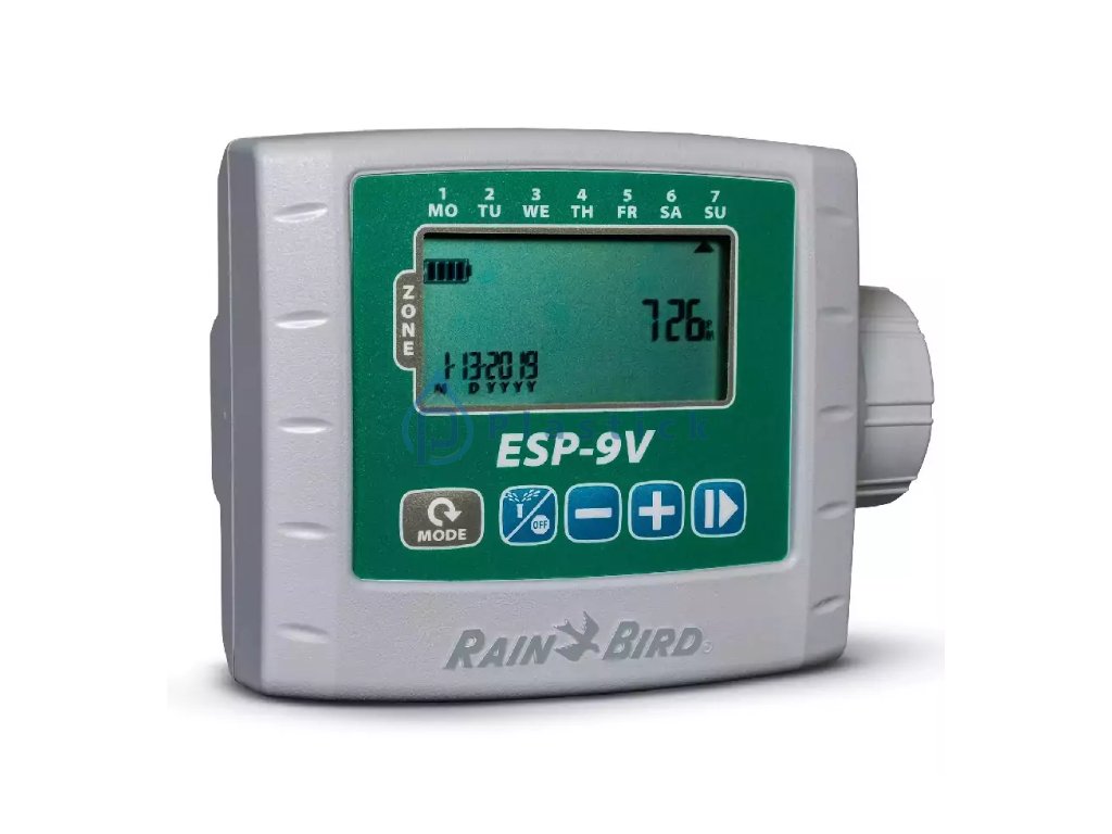 Vodeodolná batériová ovládacia jednotka ESP-9V pre 1. sekciu. Ideálne riešenie pre závlahové systémy s obmedzenou dostupnosťou napätia 230V. Ovládacia jednotka je s možnosťou pripojenia čidla zrážok Rain Bird RSD-BEx. Jednotka je vodná pre inštaláciu v exteriéri (najčastejšie priamo v závlahovej šachte), ale napríklad aj v miestach, ktoré môžu byť zaplavované vodou (IP68).