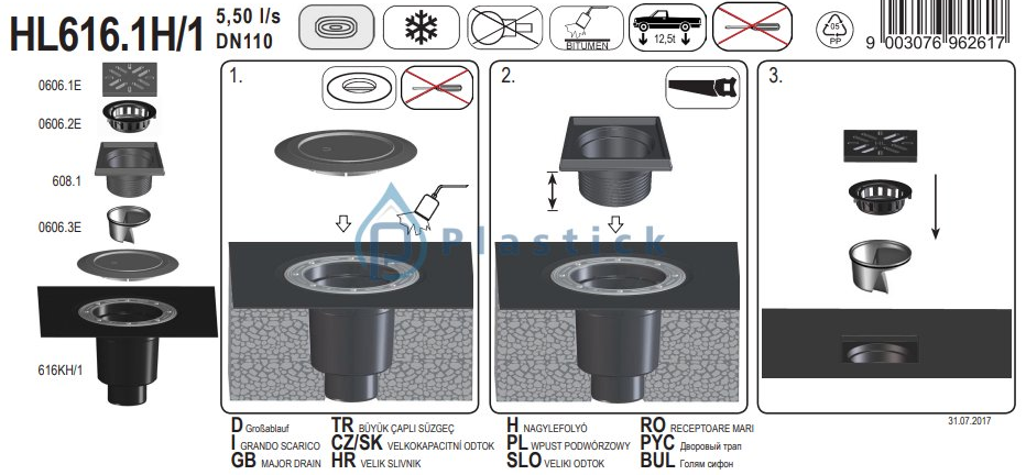 Dvorný vpust HL616.1H/1 z radu Perfekt je určený na spoľahlivé odvádzanie dažďovej vody z terás, dvorov a plôch so strešnou bitumenovou (asfaltovou) izoláciou. Vďaka integrovanej bitumenovej manžete sa jednoducho a bezpečne napája na živičnú hydroizoláciu bez dodatočného utesňovania. Robustná konštrukcia s liatinovým rámom a liatinovou mriežkou zabezpečuje vysokú mechanickú odolnosť aj pri dlhodobom používaní v exteriéri.