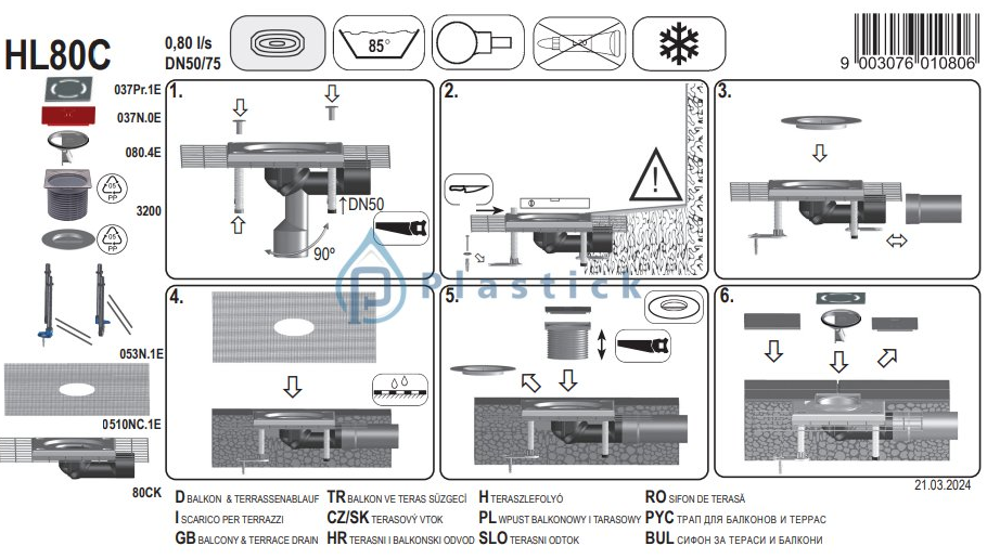HL80C je vysoko kvalitný vpustný žľab určený pre balkóny, terasy a podlahy s priemerom odtoku DN 50/75. Vpusť je vybavená otočným kĺbom, ktorý umožňuje nastaviť odtok od horizontálnej až po vertikálnu polohu — čo zaručuje flexibilnú montáž bez ohľadu na smer odtokového potrubia. Vďaka „CeraDrain“ polymérbetónovému límcu je HL80C ideálny pre moderné tenkostenné podlahové konštrukcie, keramické dlažby alebo tenké betónové vrstvy.
